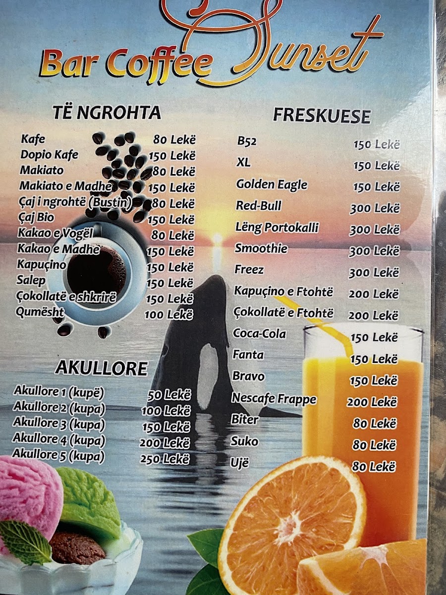 Welcome to Sunset Caffe, a charming gem located on Rruga Tirana in Kukës, Albania. This delightful café boasts an incredible view of the lake, especially breathtaking at sunset. The moment you step in, you are greeted by a warm atmosphere and friendly staff, including the owner who is known for their hospitality.